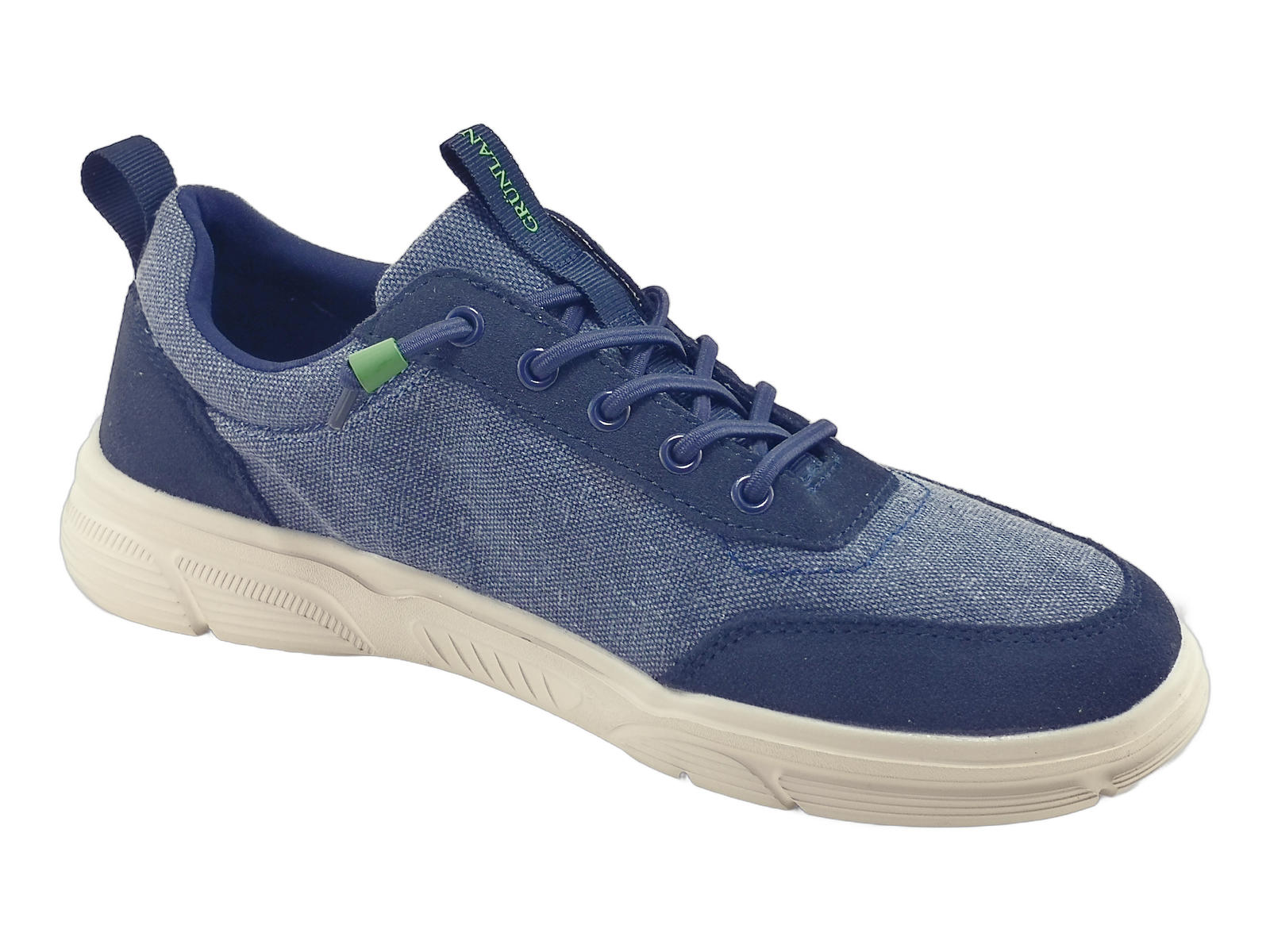 Descrizione: Sneakers Grunland uomo in tela e camoscio, con lacci elastici e sottopiede estraibile. Comode, fresche e perfette per l’estate!