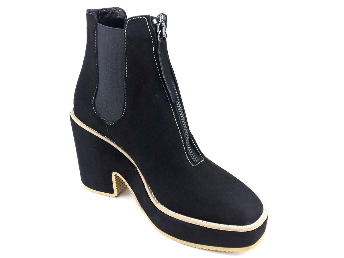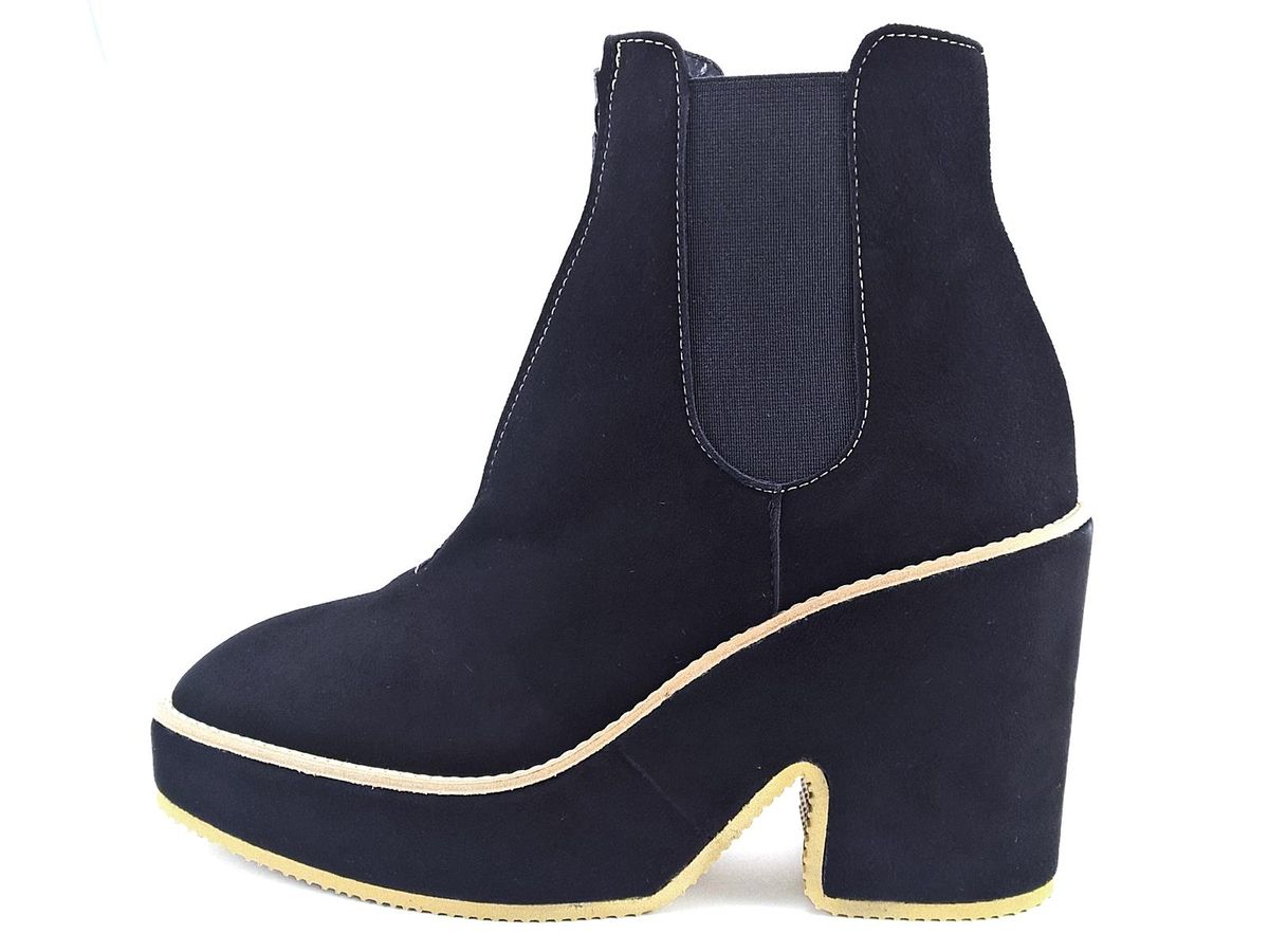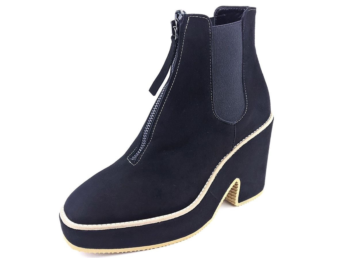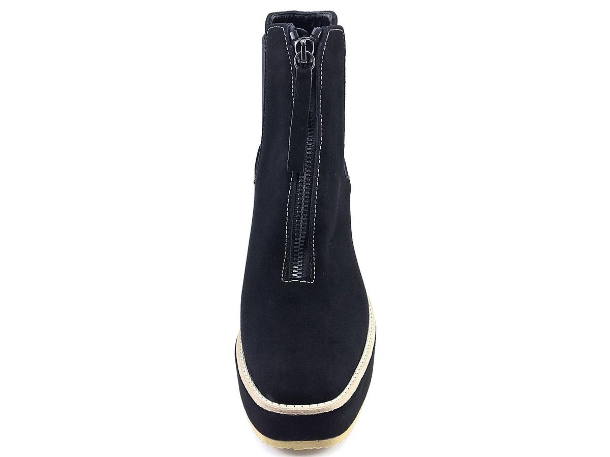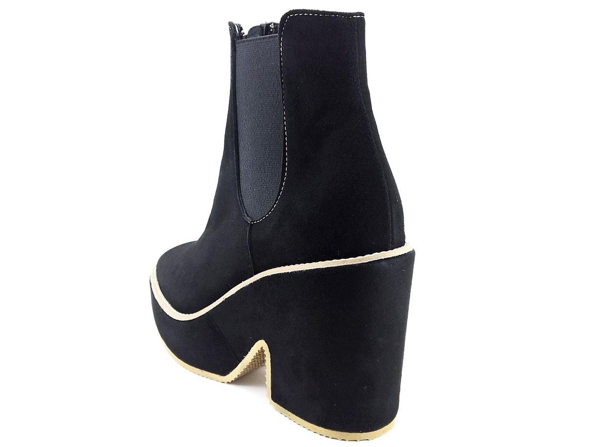 TRONCHETTO BEATLES CON ELASTICI LATERALI E CERNIERA CENTRALE, TOMAIA IN CAMOSCIO, FODERA E SOTTOPIEDE IN PELLE, FONDO RIVESTITO IN CAMOSCIO CON TACCO DI 9,5 cm E PLATEAU DI 3cm.