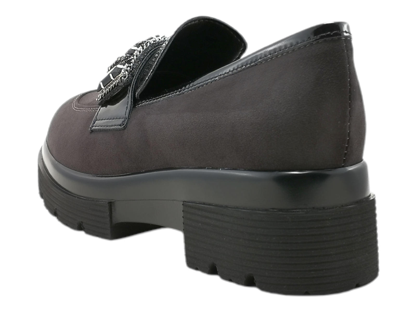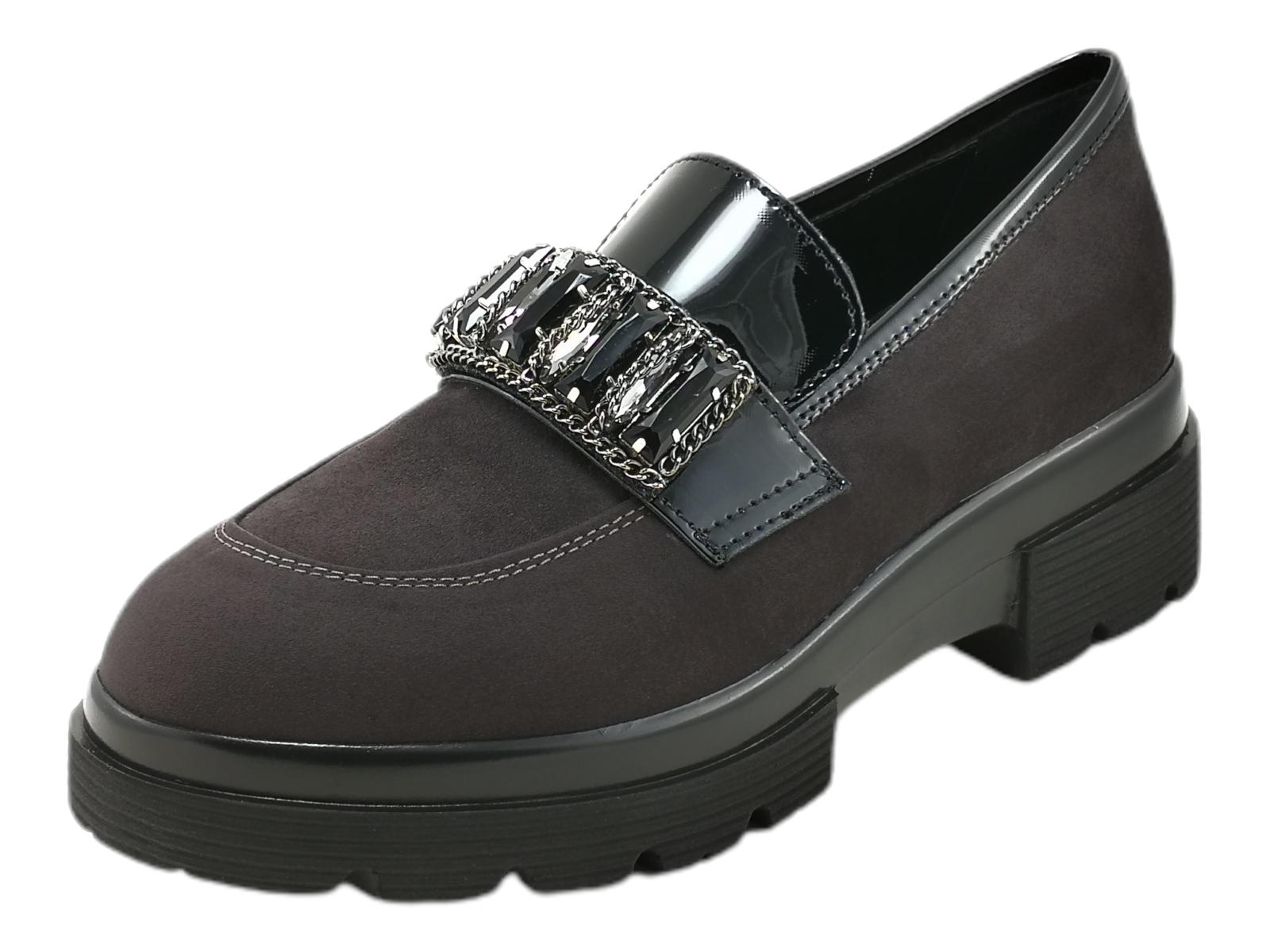 Descrizione: Esplora l'eleganza senza tempo con il mocassino da donna Cinzia Soft MM4836. Questo mocassino, confezionato con cura utilizzando camoscio e vernice, si distingue per il suo design accattivante arricchito da un raffinato accessorio di pietre in tinta. Grazie al sottopiede imbottito in pelle, garantisce comfort prolungato e una sensazione di lusso ad ogni passo. Con un fondo carrarmato alto 5 cm, unisce stile e praticità, offrendo un tocco di altezza senza compromettere il comfort. Scegli il Cinzia Soft MM4836 per un look sofisticato e un comfort duraturo.