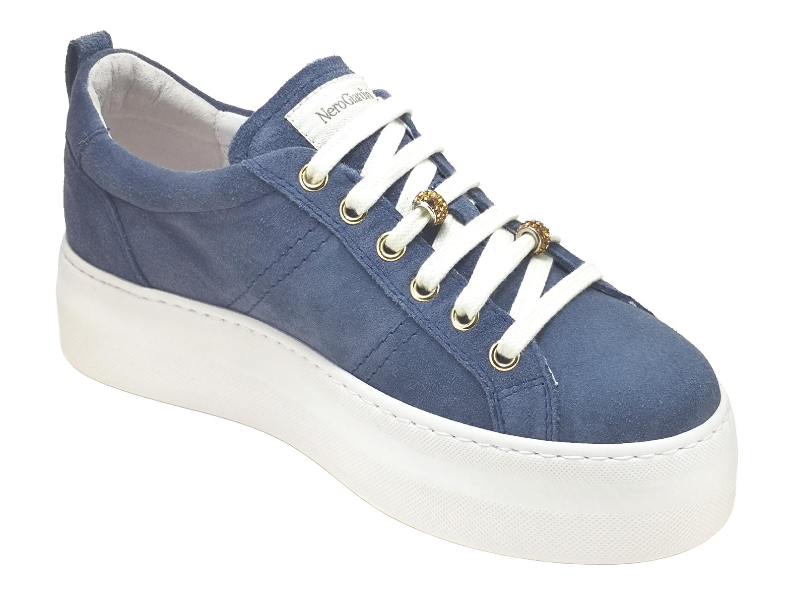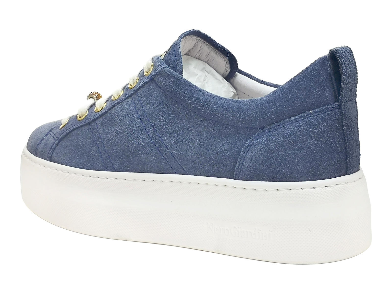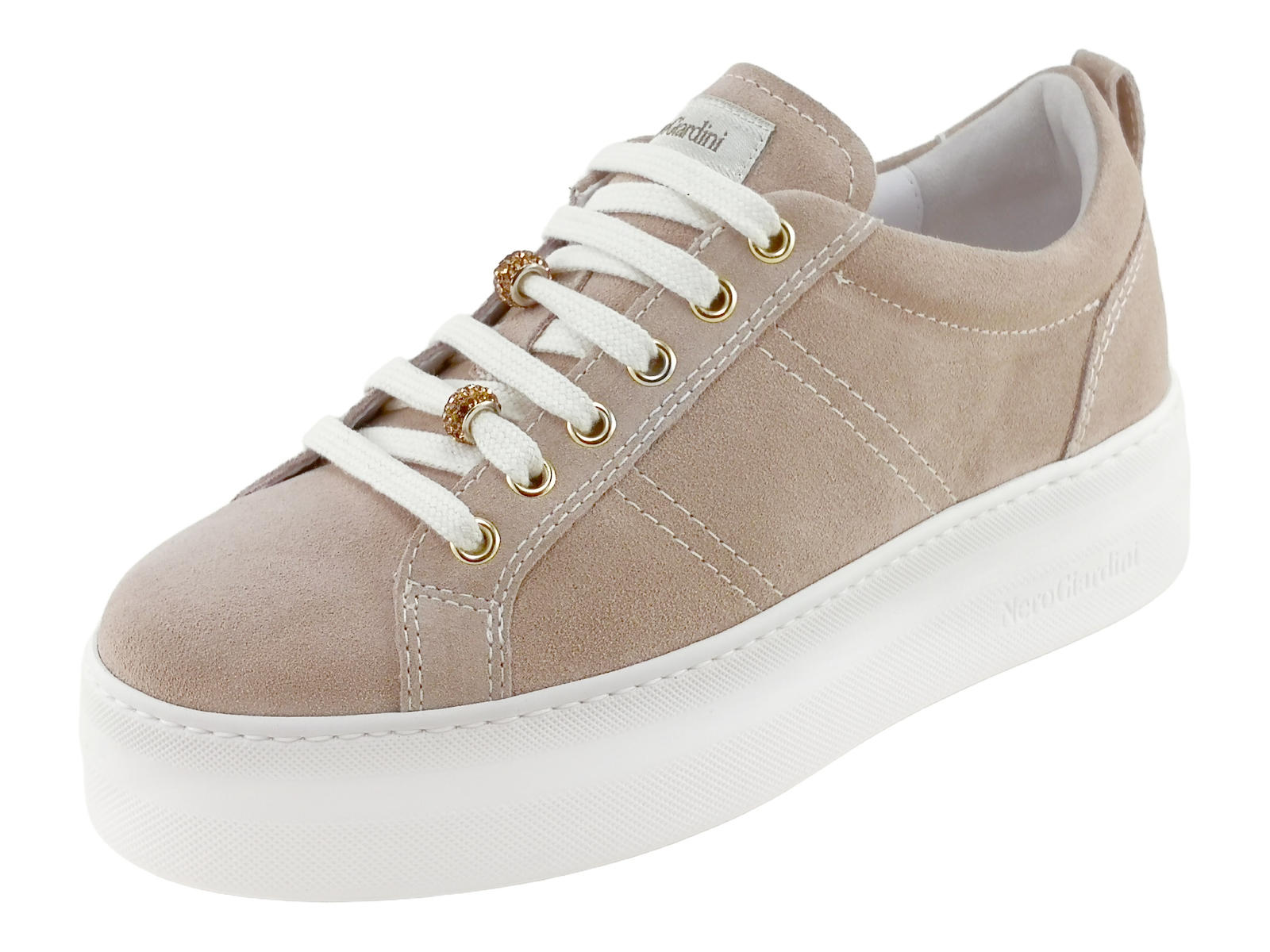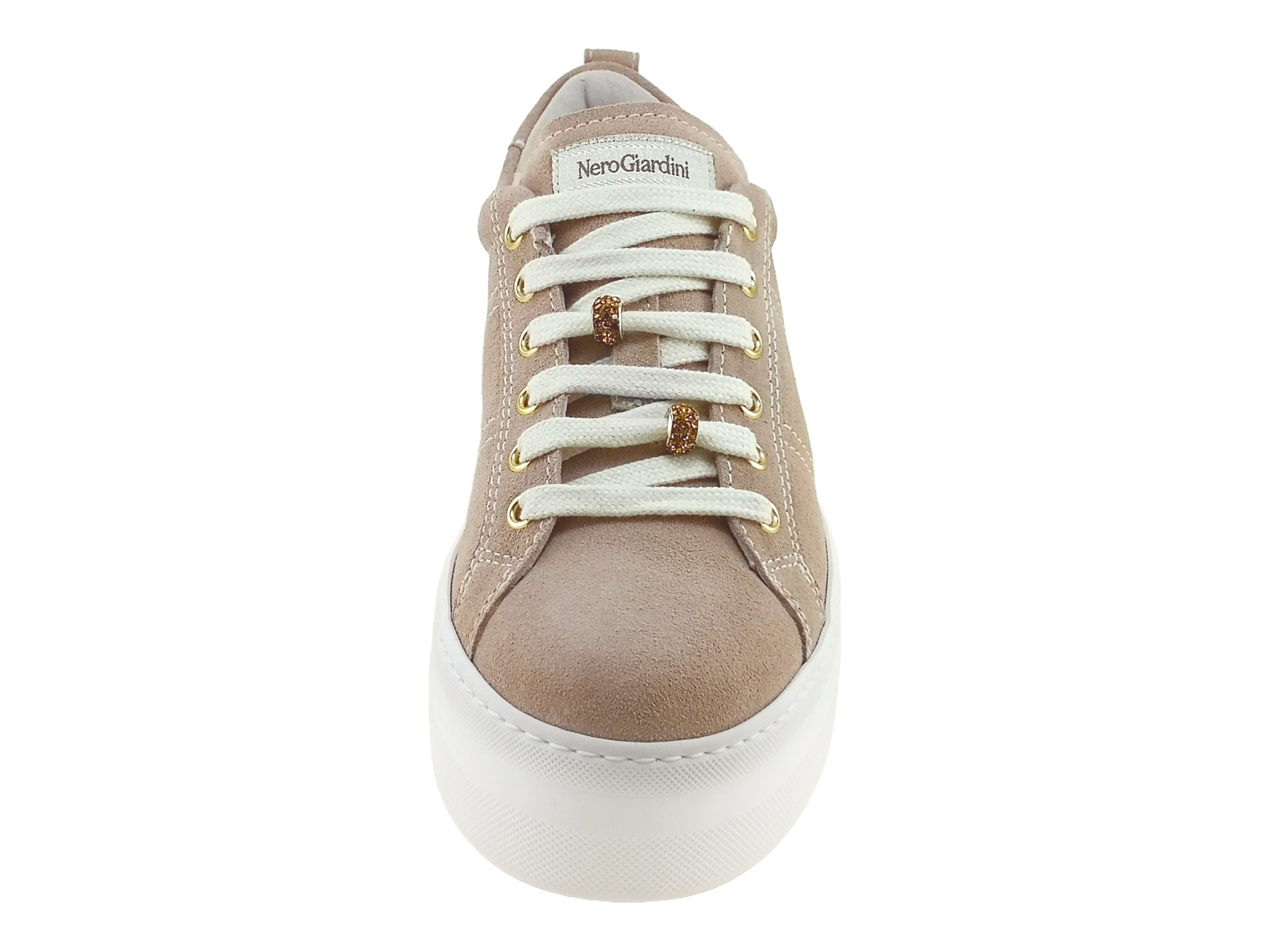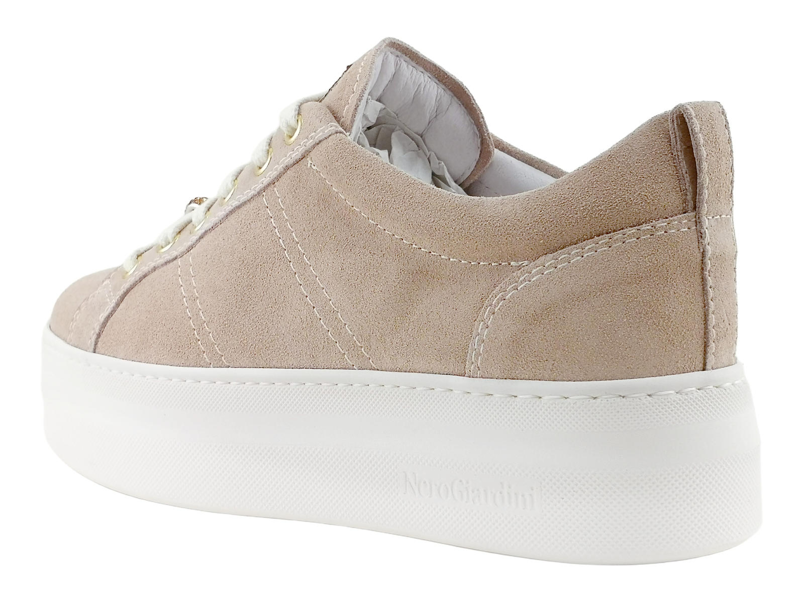 Descrizione: Aggiungi una nota di luce e raffinatezza al tuo look quotidiano con le nuove sneaker NeroGiardini in soffice velour.