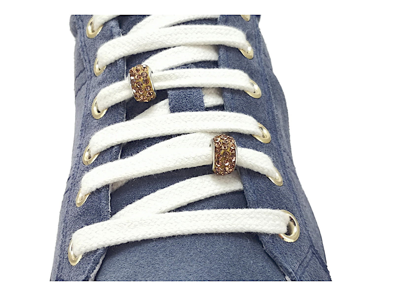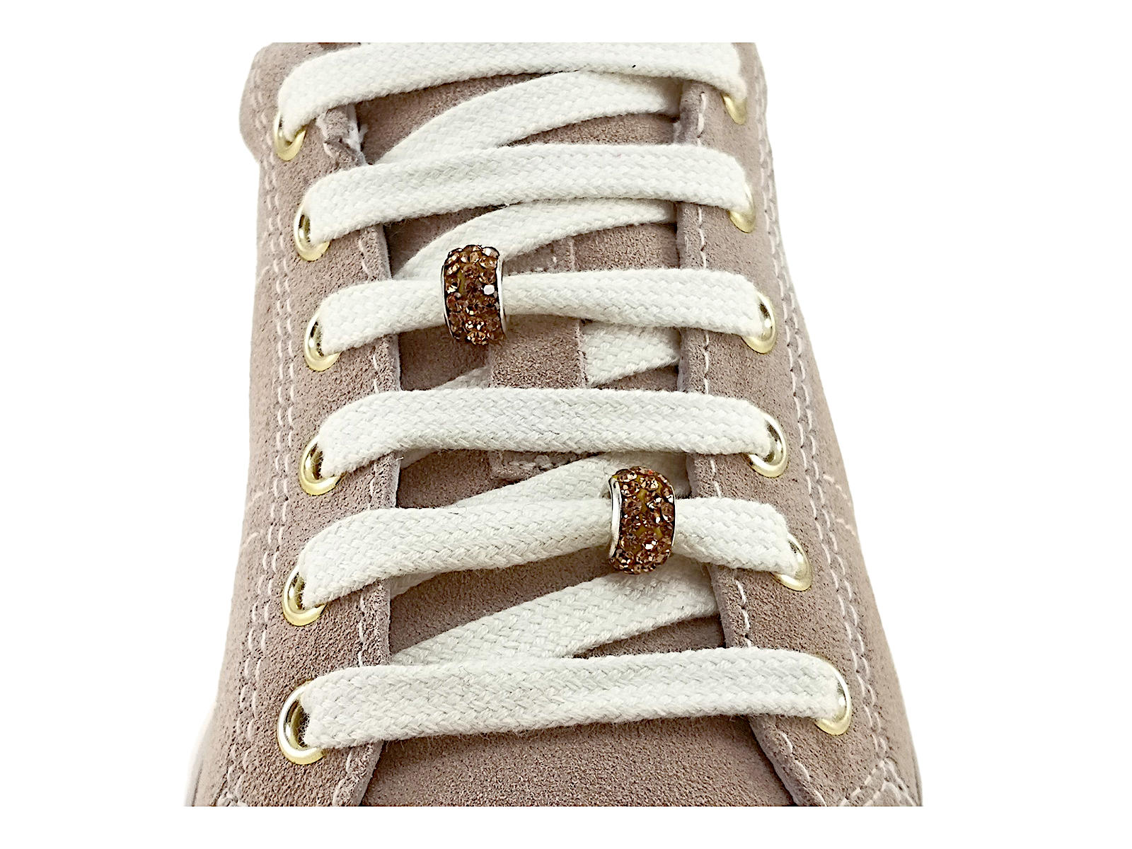 Accessori gioiello: anellini con strass ambrati sui lacci removibili