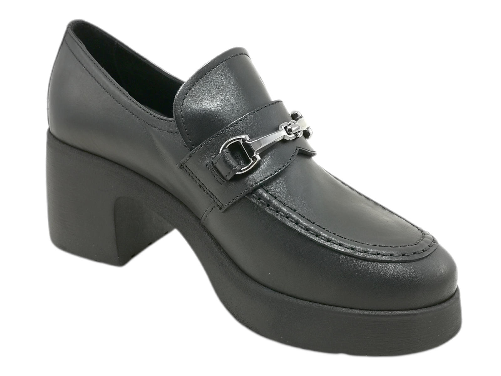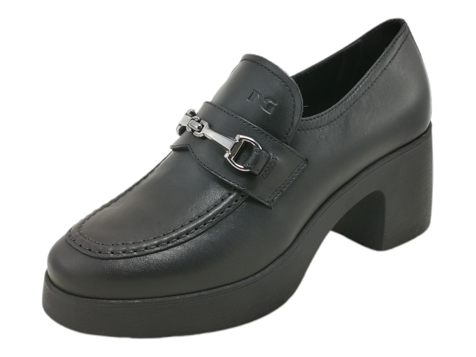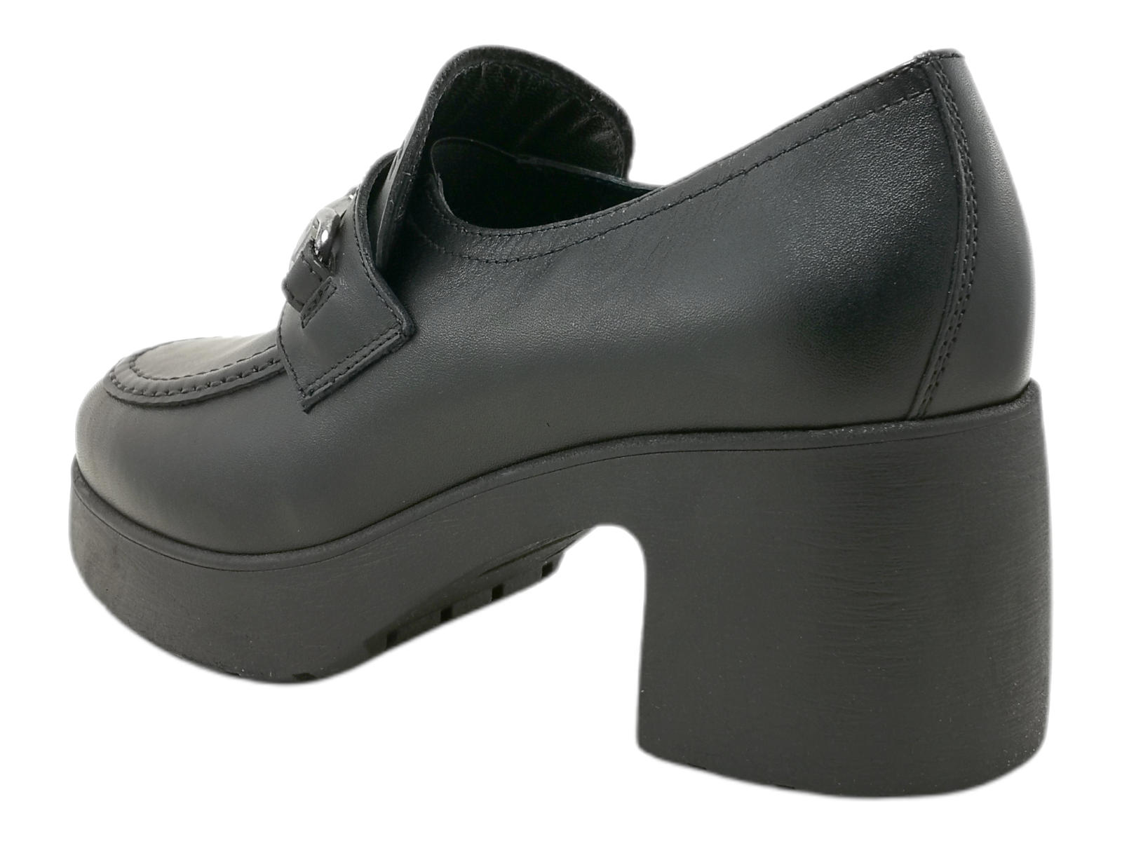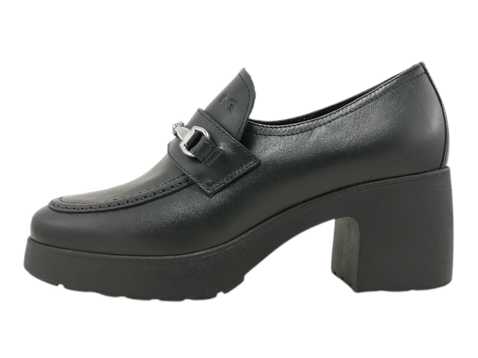 Descrizione: Scopri i Mocassini Donna NeroGiardini I411290D in pelle con tacco a blocco e accessorio metal brunito, comodi e versatili, su Laporta Calzature. Acquista ora!