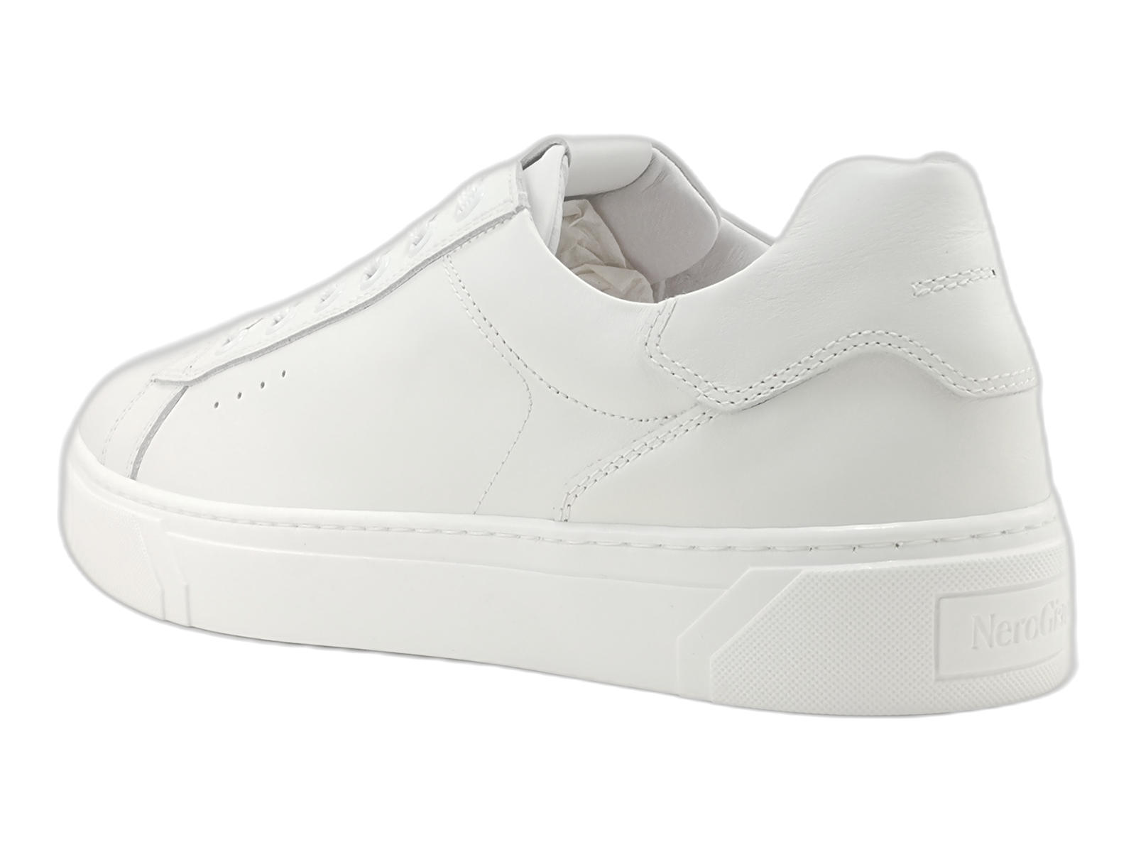 Descrizione: Sneakers uomo NeroGiardini in pelle bianca con sottopiede DryGo e fondo platform. Stile e comfort top. Scoprile ora!