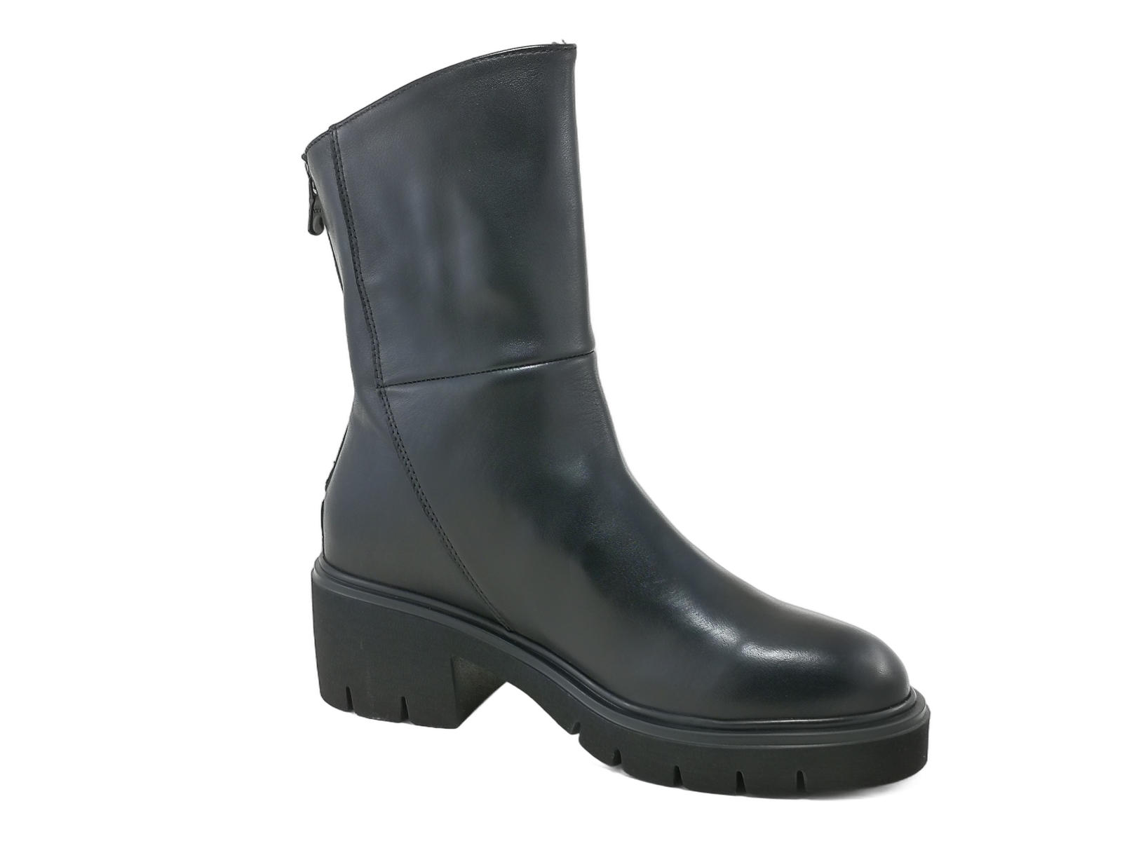 Descrizione: Stivaletto NeroGiardini I514818D: pelle nera, zip posteriore, fondo carrarmato e tacco 5 cm. Comodo, grintoso e rock. Made in Italy.