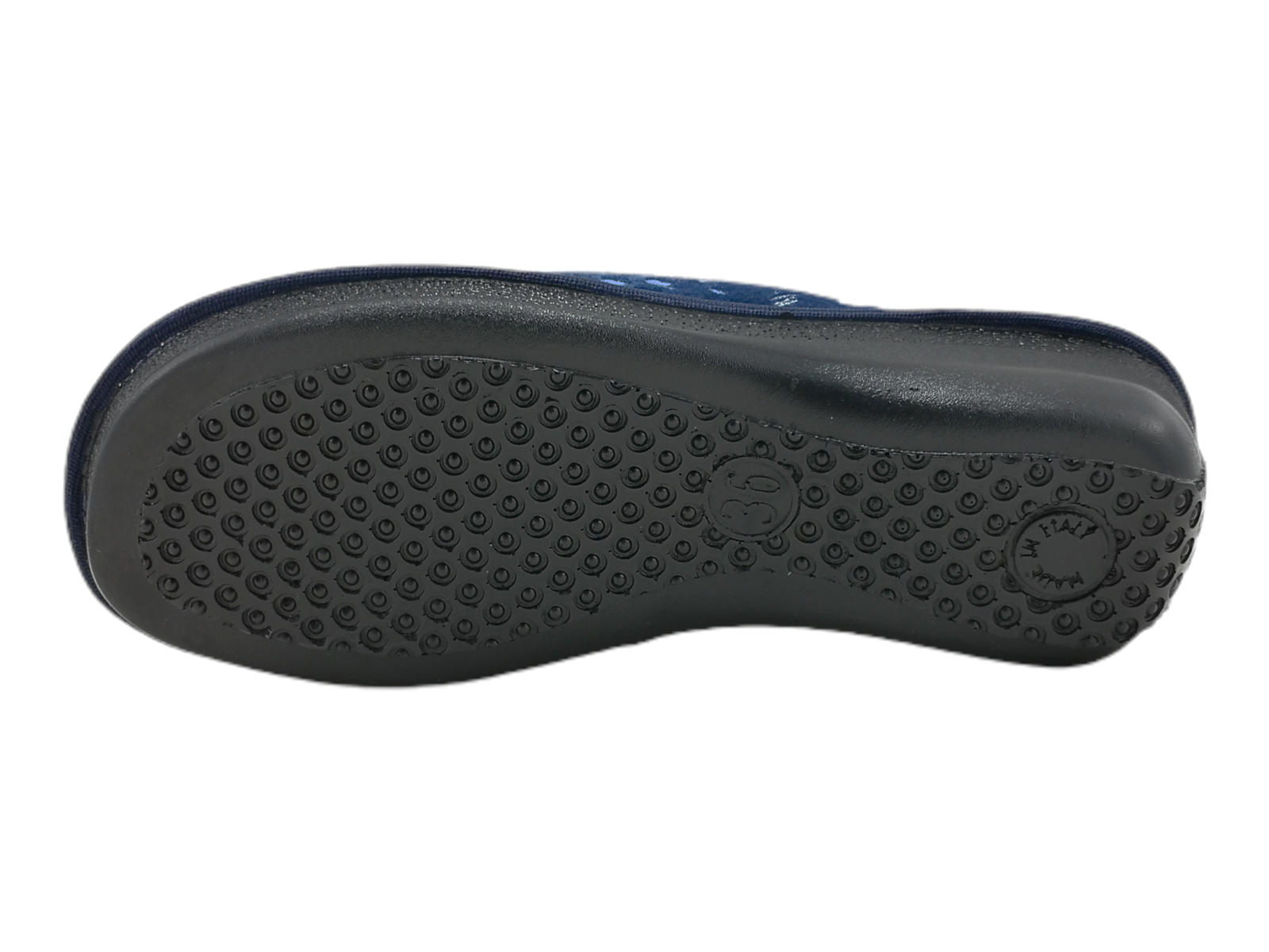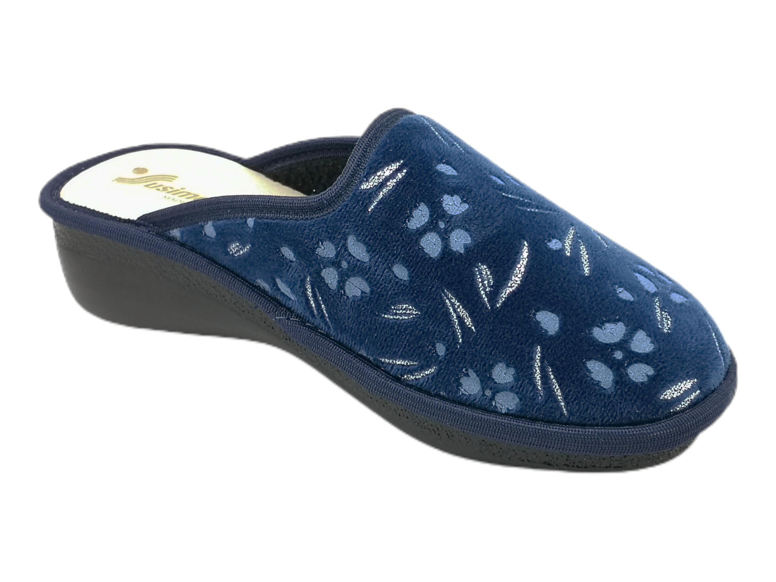 Descrizione: Esplora la pantofola da donna Susimoda 63240/61! Realizzate con amore in Italia, queste pantofole sono la perfetta combinazione di comfort e stile. Con una tomaia in morbido velluto blu e bordeaux con una stampa fantasia vivace, aggiungeranno un tocco di colore e allegria alle tue giornate in casa. Il sottopiede in pelle offre un comfort straordinario, mentre il fondo zeppa di 4 cm extra leggero ti permette di camminare con facilità. Calde, leggere e incredibilmente comode, queste pantofole sono un vero must-have per i momenti di relax. Rilassati con stile e coccola i tuoi piedi con le pantofole Susimoda!