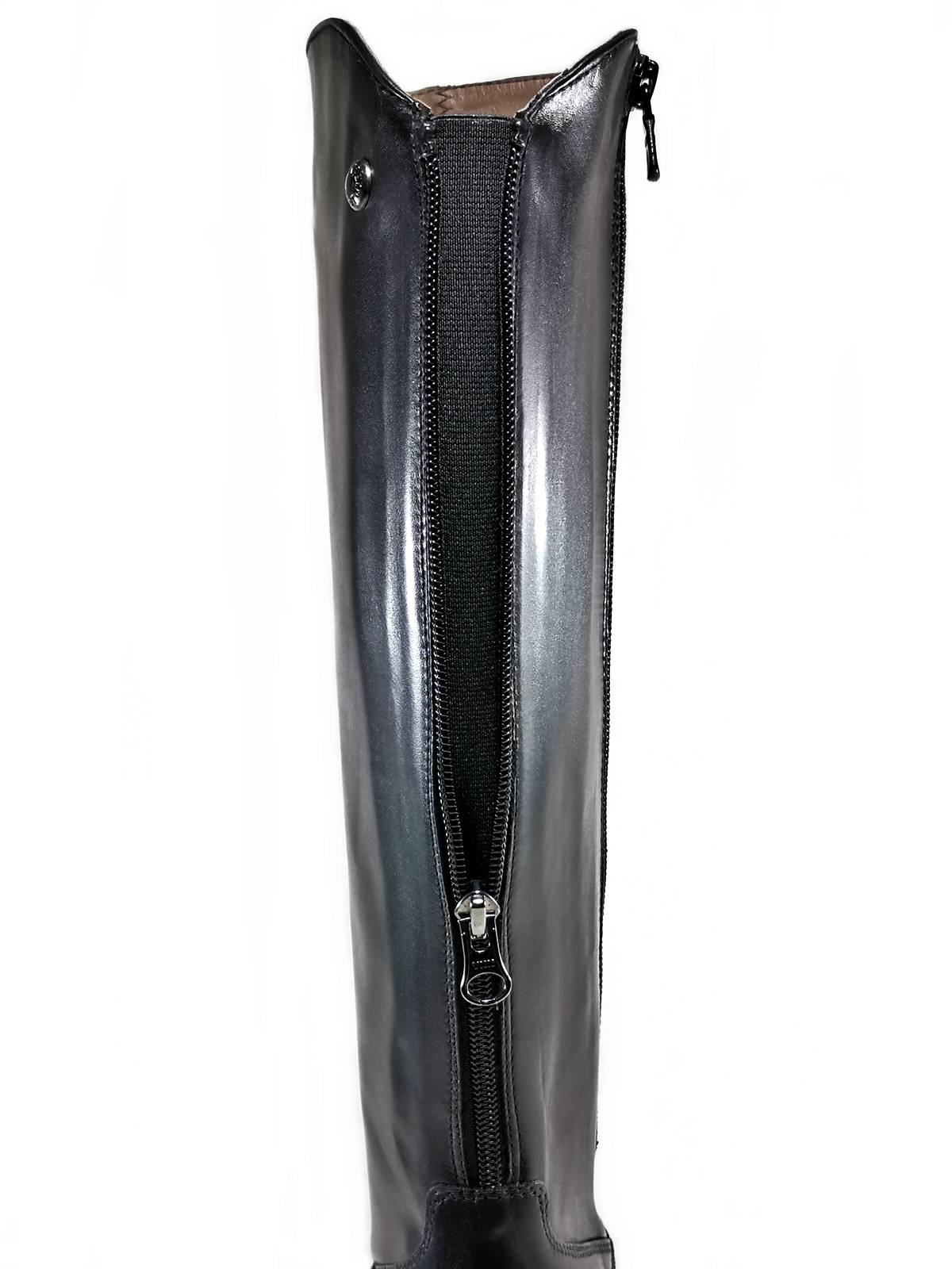 Descrizione: Stivali donna cavallerizzo NeroGiardini I117561D - Stivale realizzato in pelle dal design sportivo e raffinato, dotato di regolazione gambale con elastico e cerniera. Calzata comoda su tacco a blocco di 4 cm e fondo gomma (Made in Italy).