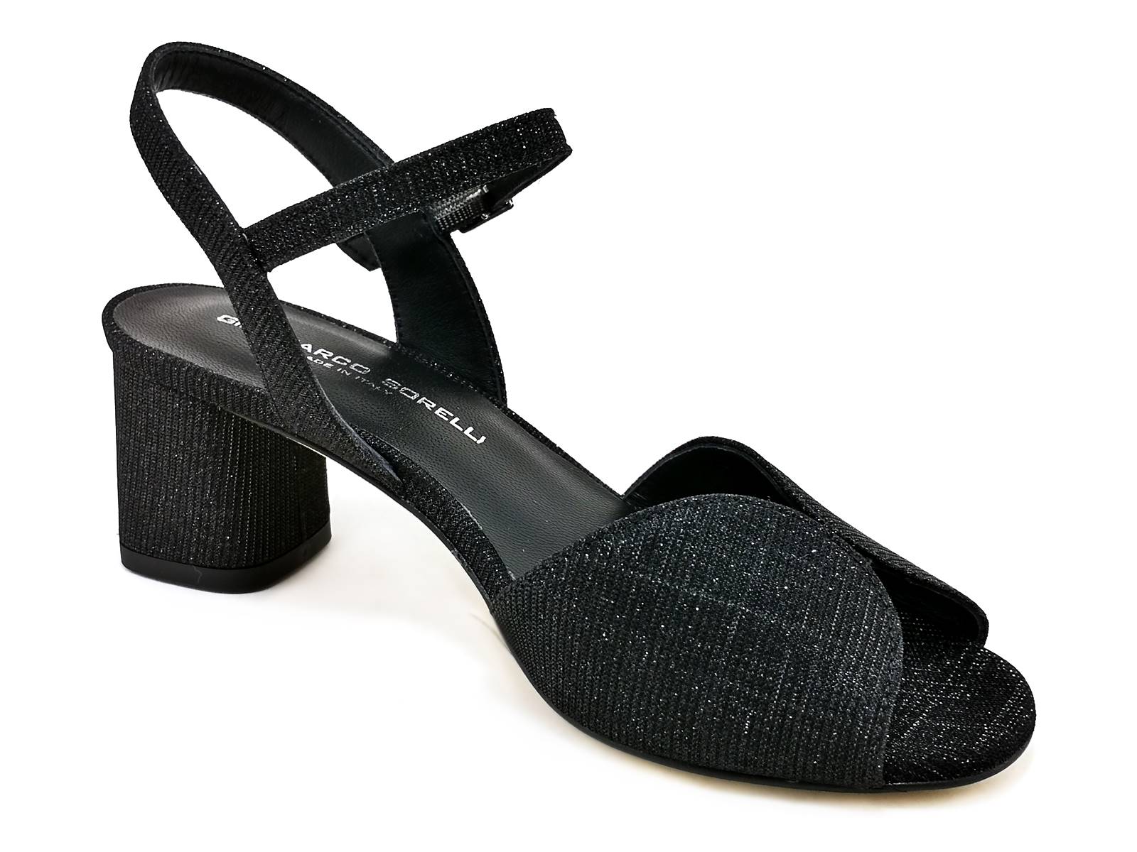 Descrizione: Risplendi di luce e glamour con il sandalo elegante da donna Gianmarco Sorelli 2036/Imma. Realizzato in scintillante glitter, disponibile in due varianti di colore: platino e nero. Dotato di elegante cinturino alla caviglia, il tacco rivestito in glitter alto 5,5 cm aggiunge slancio alla tua figura. La suola in vero cuoio offre un tocco di lusso e durata. Scegli lo stile sofisticato e brillante con Gianmarco Sorelli 2036/Imma e fatti notare in ogni occasione.