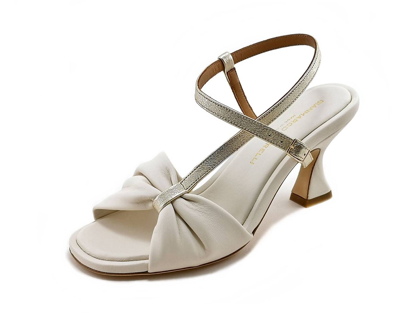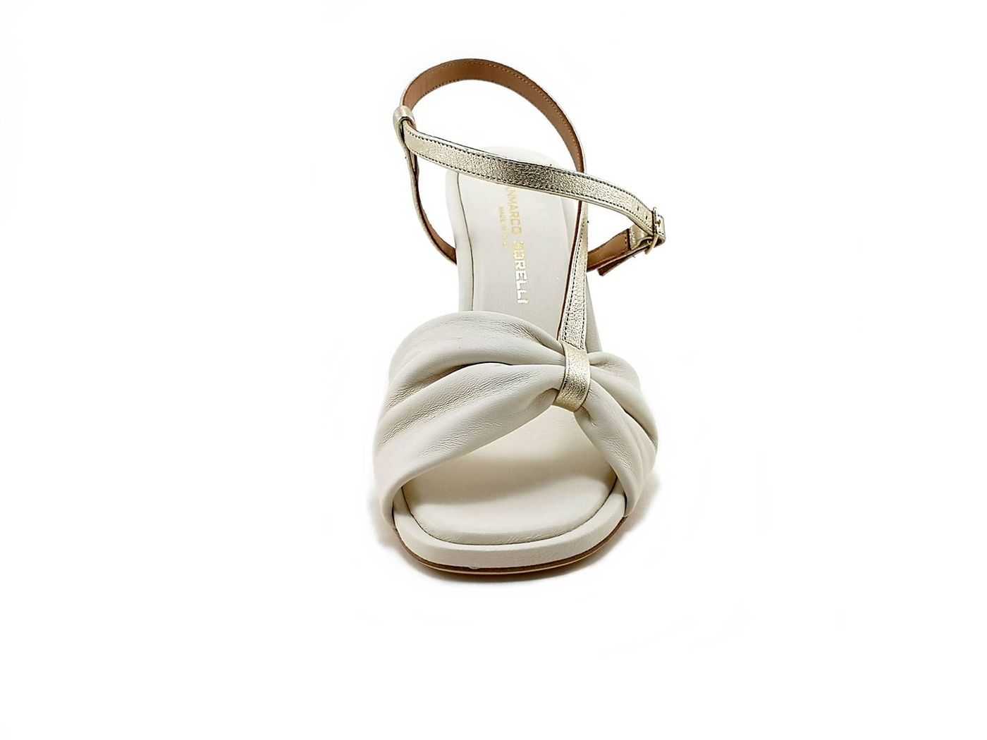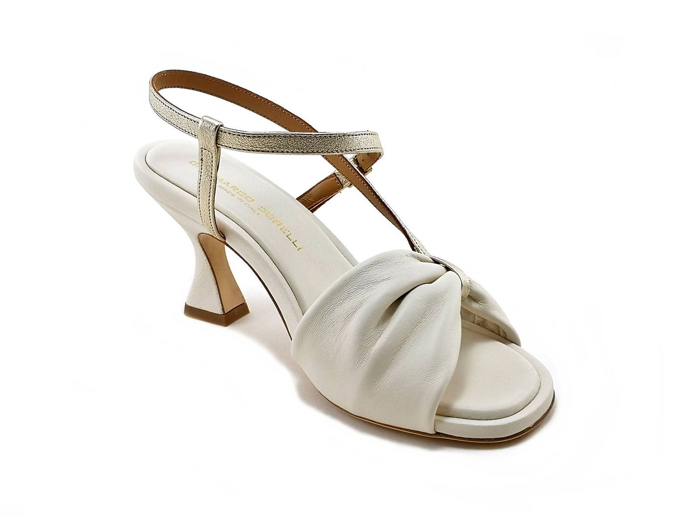 Descrizione: Sandali con tacco rocchetto Gianmarco Sorelli 2121/Lia - Sandali eleganti in morbida pelle e cinturino in pelle laminata, fodera pelle e sottopiede imbottito in pelle, tacco rocchetto rivestito in pelle di 7,5 cm e suola in Vero Cuoio. Made in Italy.