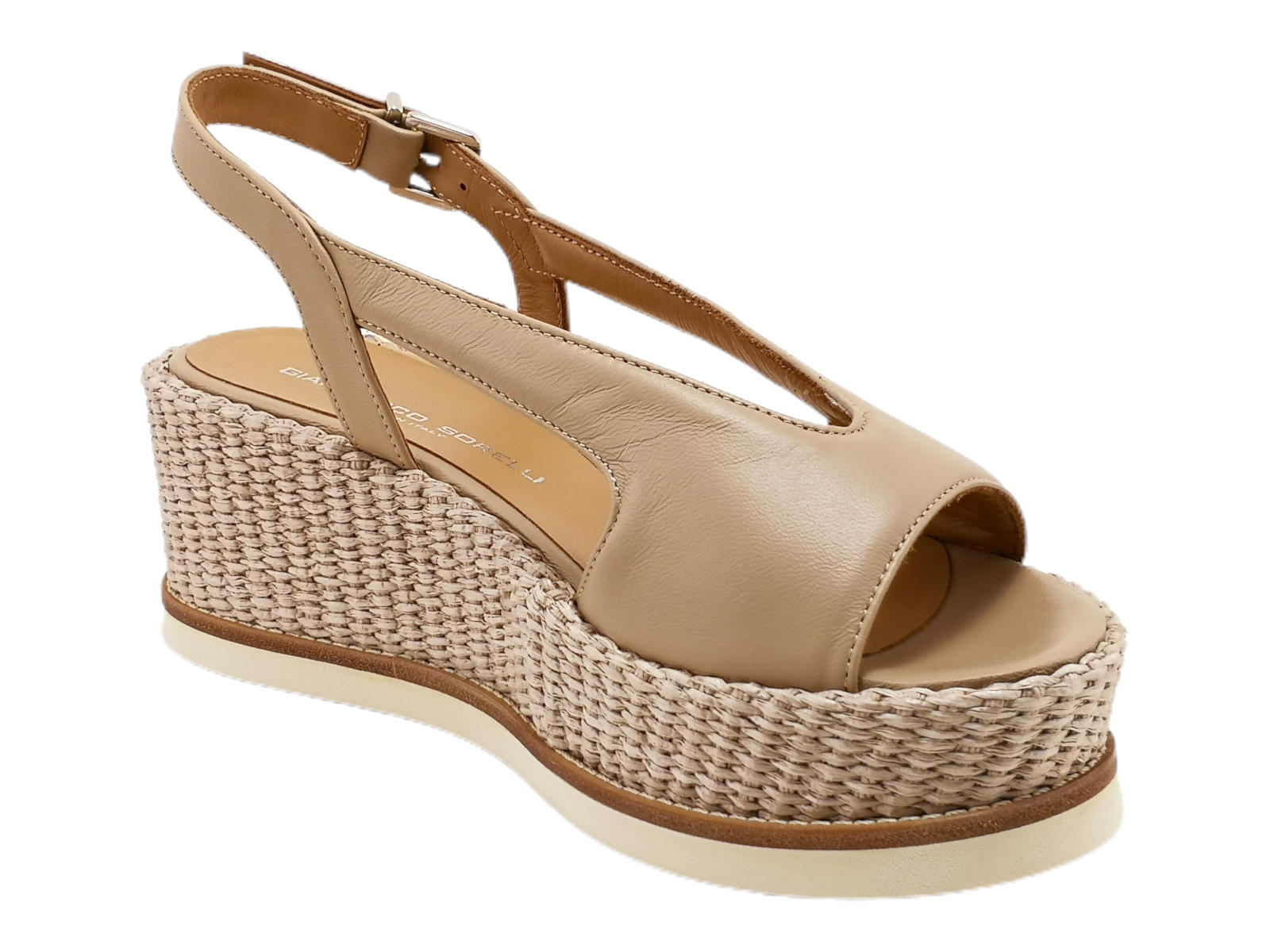 Descrizione: Scopri l'eleganza senza tempo del sandalo zeppa slingback da donna Gianmarco Sorelli 2157/Jil-Mg. Questo sandalo incanta con il suo design sofisticato. Realizzato interamente in pelle imbottita, offre comfort e stile ineguagliabili. Il cinturino posteriore aggiunge un tocco di classe. La zeppa di 6 cm, rivestita in rafia/cestino, dona altezza senza compromettere il comfort. La suola in micro leggero garantisce una camminata leggera. Questo sandalo è un capolavoro di eleganza e artigianato italiano, rappresentando il meglio dello stile. Sia che tu stia partecipando a un evento speciale o desideri aggiungere raffinatezza alla tua routine quotidiana, il sandalo Gianmarco Sorelli 2157/Jil-Mg è la scelta perfetta.