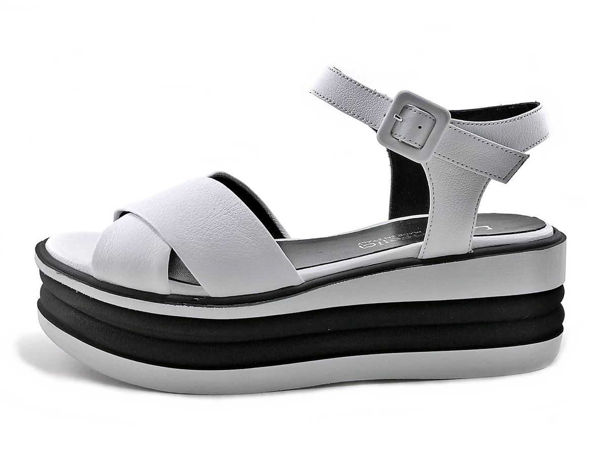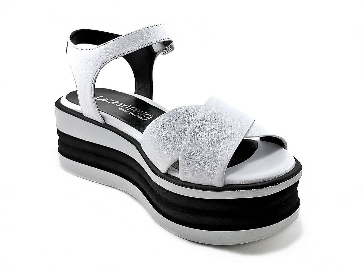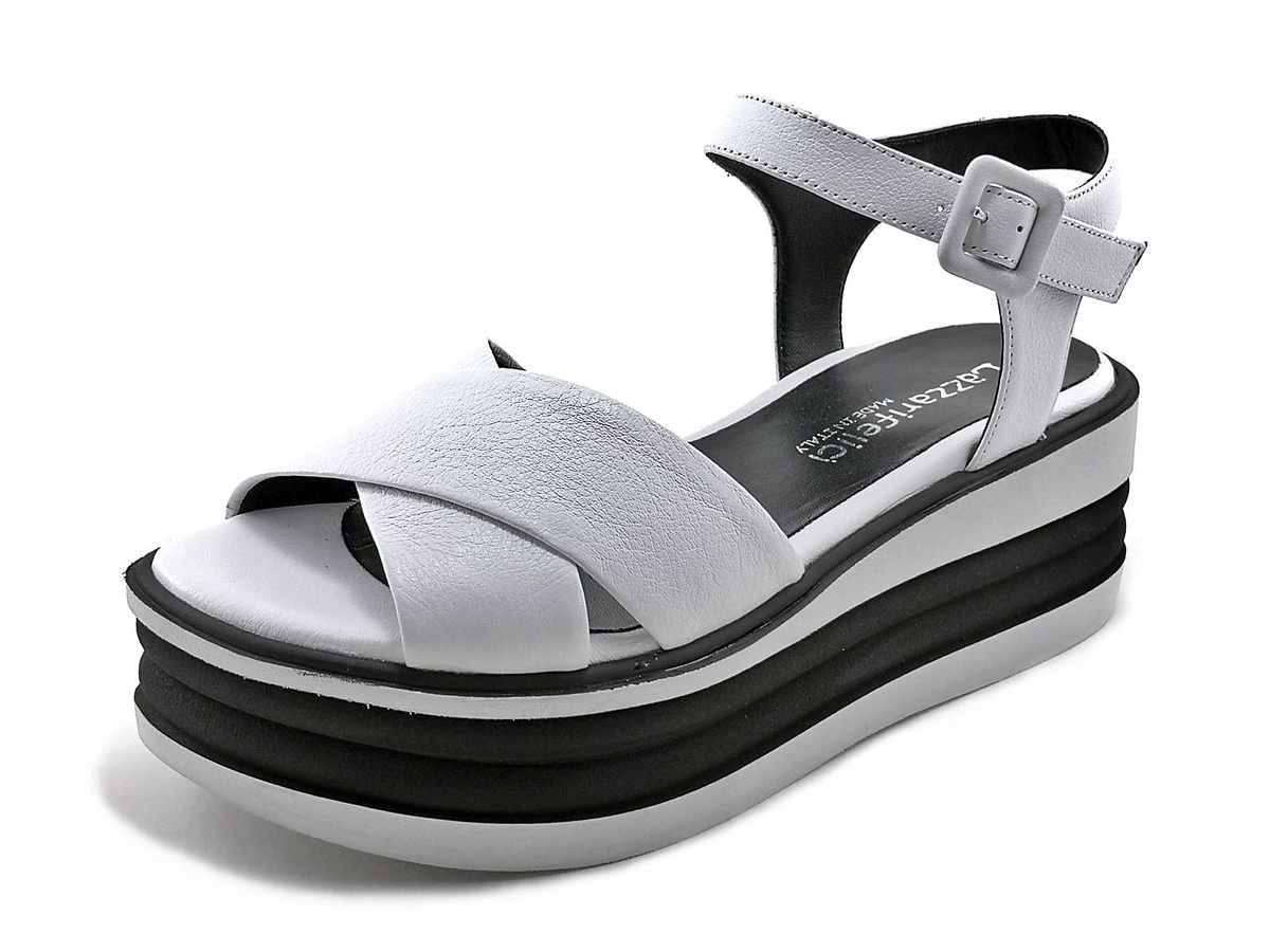 Descrizione: Lazzarifelici, Sandalo da donna con cinturino alla caviglia, Plantare in pelle imbottito, Tomaia e fodera in vera pelle, Chiusura con fibbia, Zeppa in Micro di 5,5 cm, Art. 2666, Made in Italy.
