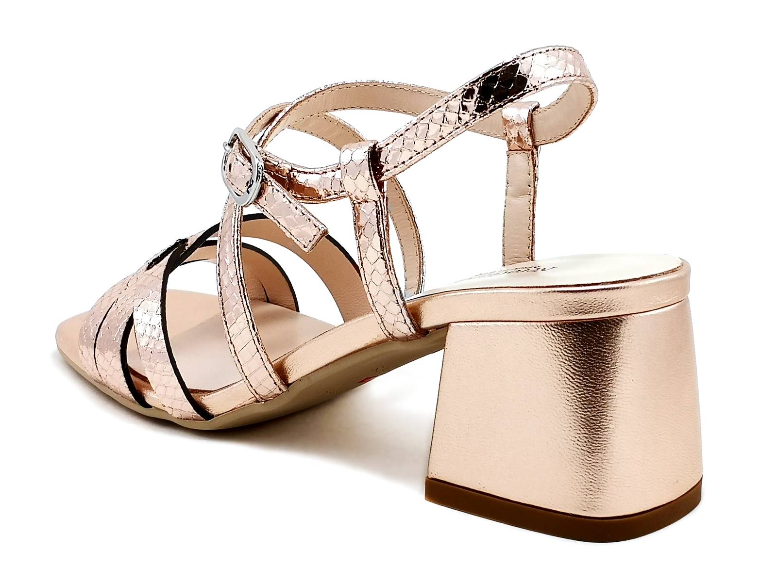 Descrizione: Aggiungi un tocco di eleganza sofisticata al tuo look con il sandalo da donna NeroGiardini E218440DE. Realizzato in pelle lucida stampata rettile color phard, questo sandalo incanta con il suo design raffinato. Il cinturino incrociato sul collo dona un tocco di femminilità, mentre il tacco a blocco di 5,5 cm offre comodità e stabilità. La suola in gommina antiscivolo assicura una camminata sicura. Il sandalo è orgogliosamente made in Italy, sinonimo di qualità artigianale. Aggiungi un tocco di classe al tuo stile con questo sandalo elegante e versatile.