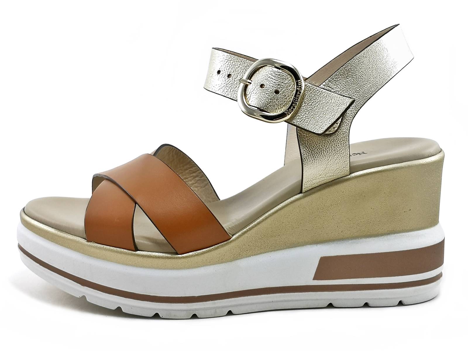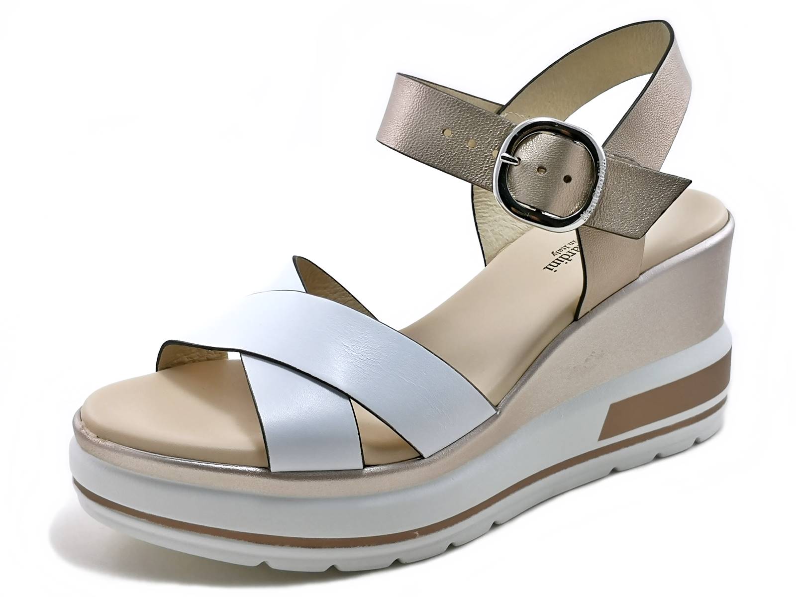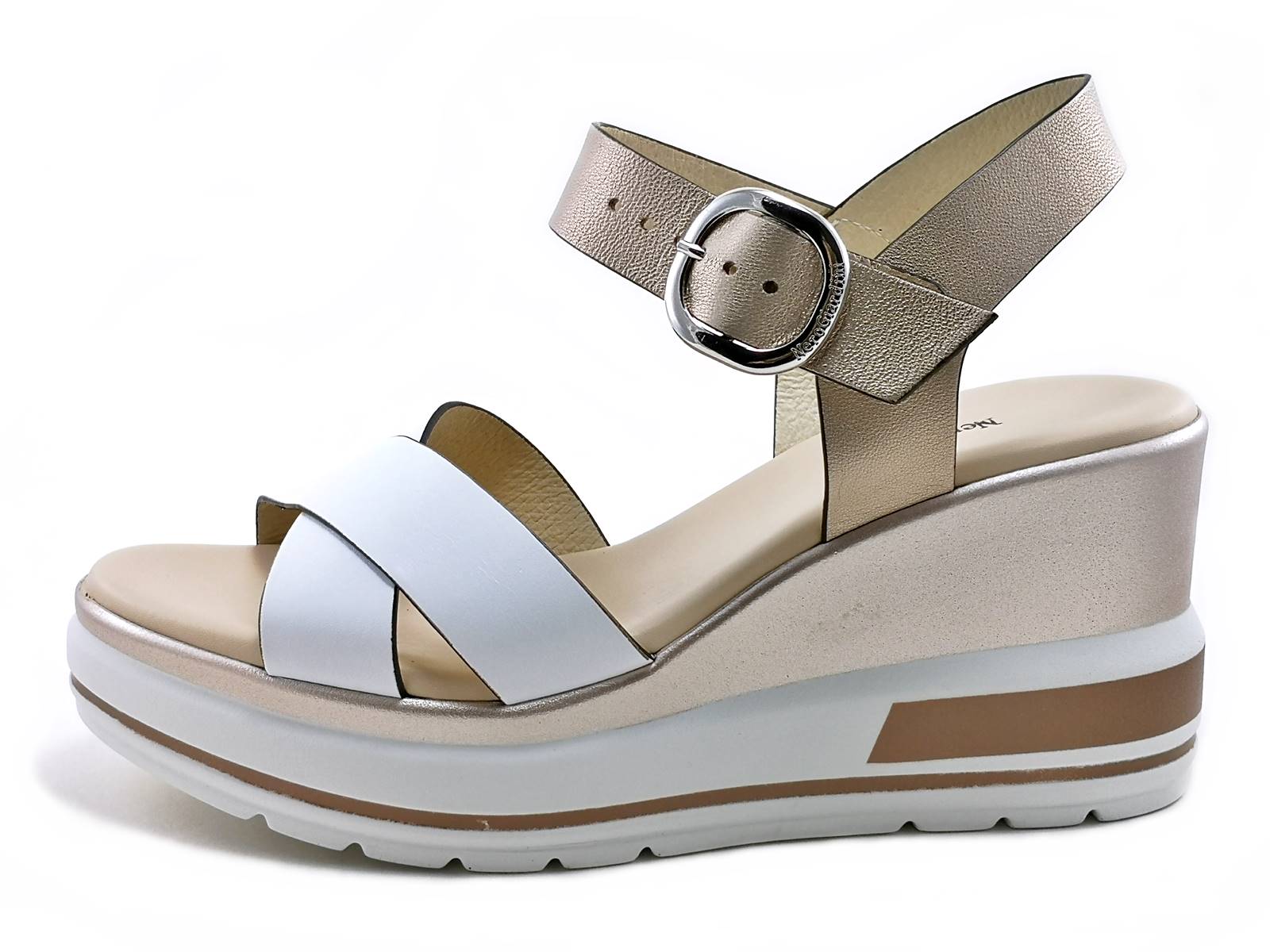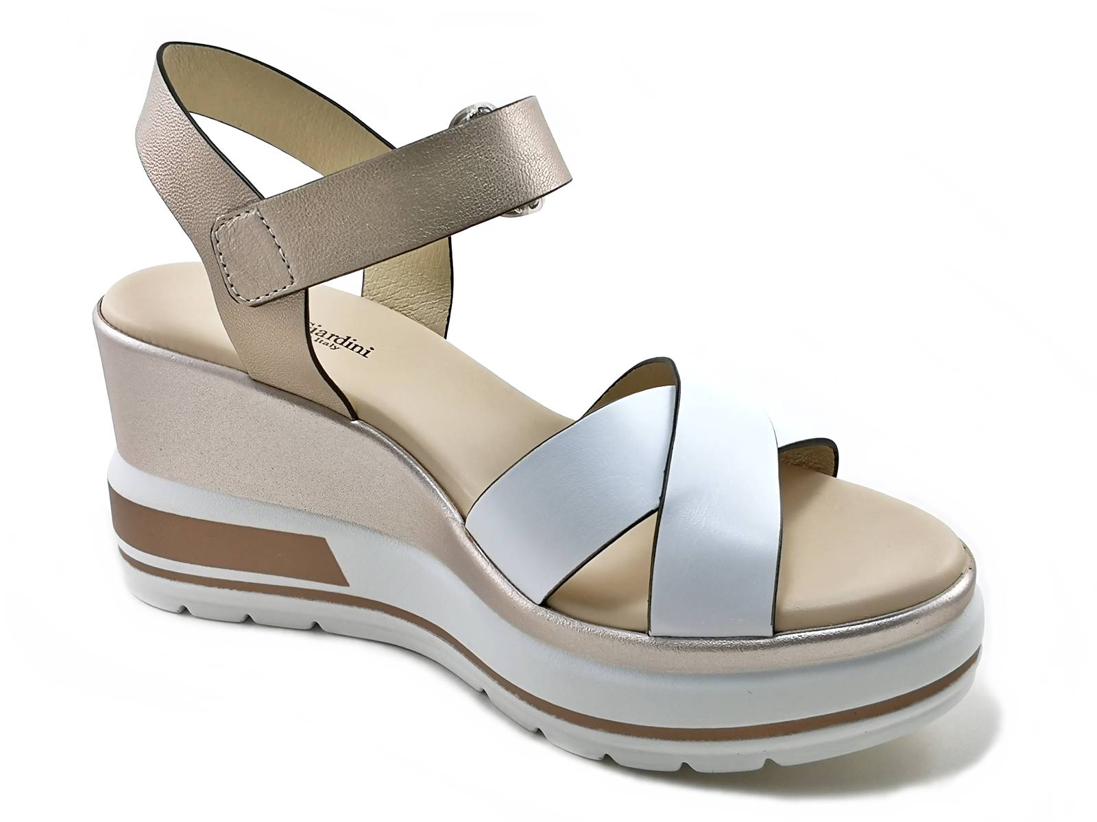 Scopri il sandalo con zeppa NeroGiardini E218737D! Realizzato in pelle bicolore, con cinturino alla caviglia regolabile, zeppa alta 7,5 cm e sottopiede imbottito in pelle per un comfort assoluto. La calzata è comoda e la qualità è made in Italy. Acquista ora sul nostro sito e-commerce!