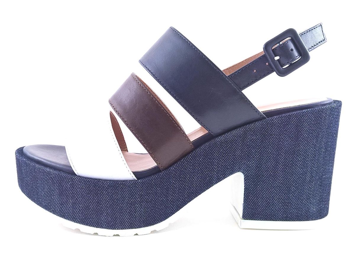 SANDALO CON FASCE IN PELLE E FONDO JEANS DI 8,5 CM
