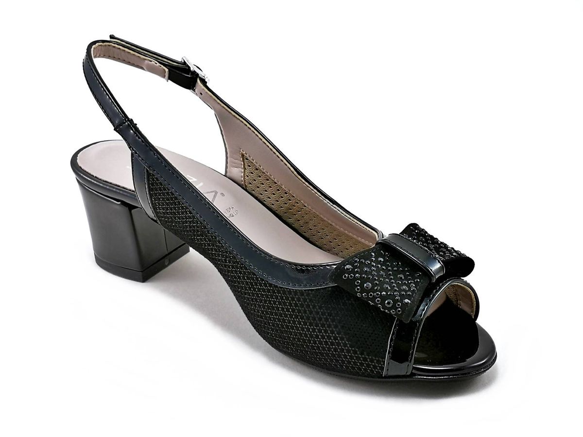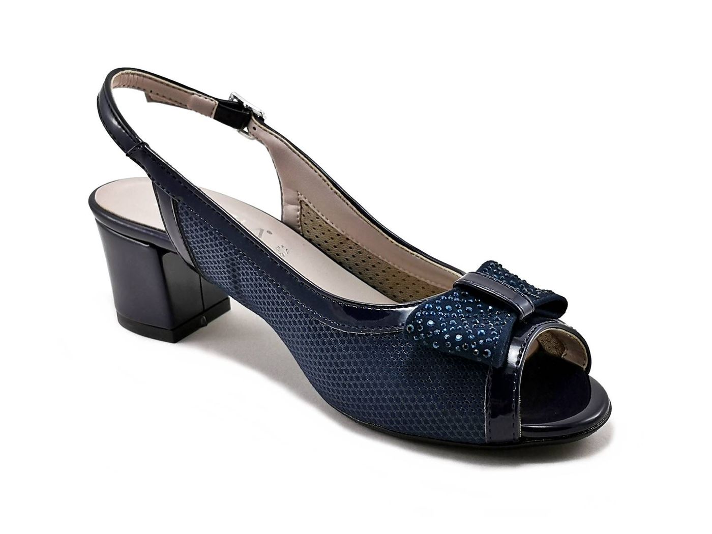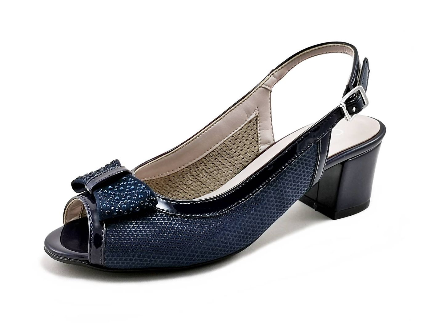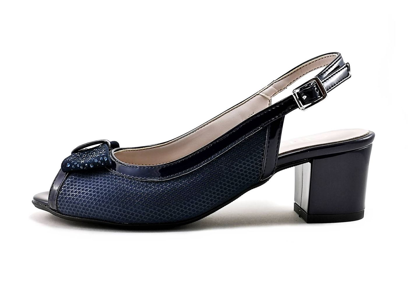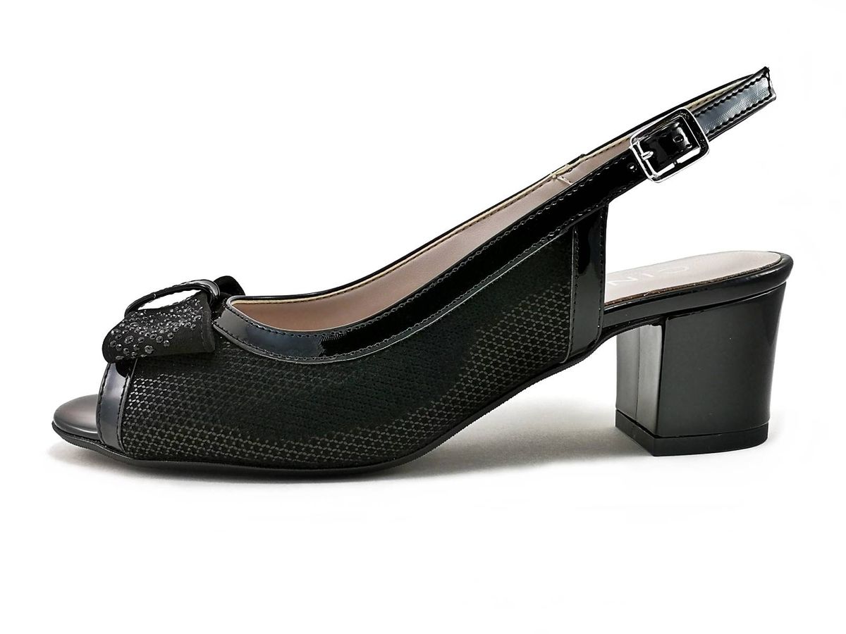 Descrizione: CINZIA Soft IAB293304FD. Slingback elegante linea comoda, realizzata in morbido camoscio e vernice. Accessorio fiocco in camoscio con strass. Comodo tacco di 5 cm e suola in gommina antiscivolo.