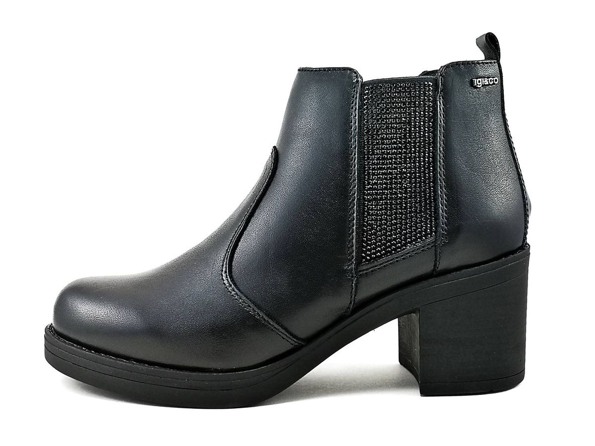 Descrizione: Igi&Co 8152911. Stivaletti Chelsea da donna in morbida pelle nera con elastici laterali arricchiti di mini perline in stile minimal. Fondo in gomma con tacco di 6,5 cm. Made in Italy.